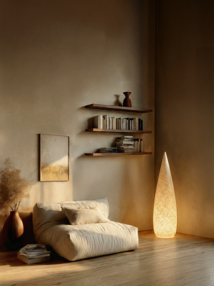 낮에는 공간의 중심을 잡아주는 아트 피스로, 밤에는 휴식에 맞춘 부드러운 조명으로 일상에 유연하게 스며듭니다.